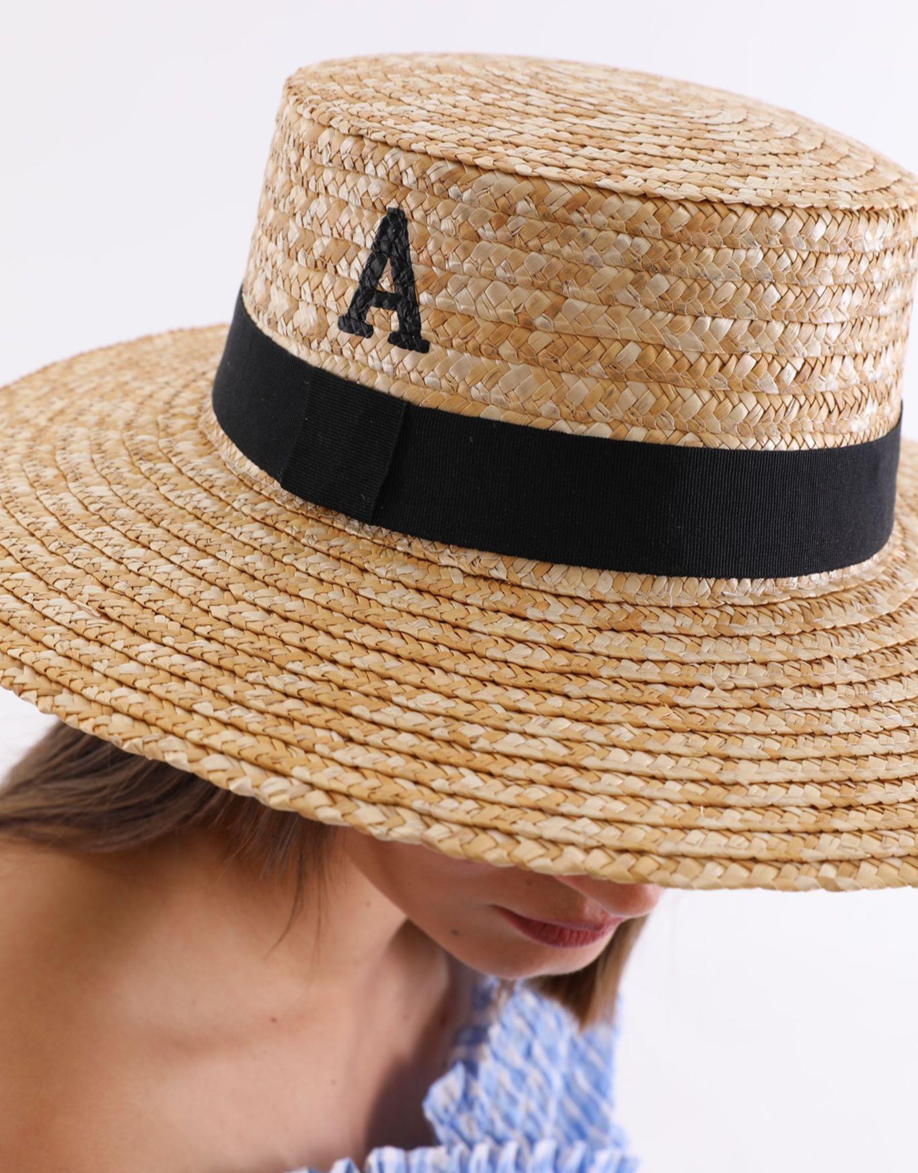 -El boyaması harfli hasır şapka