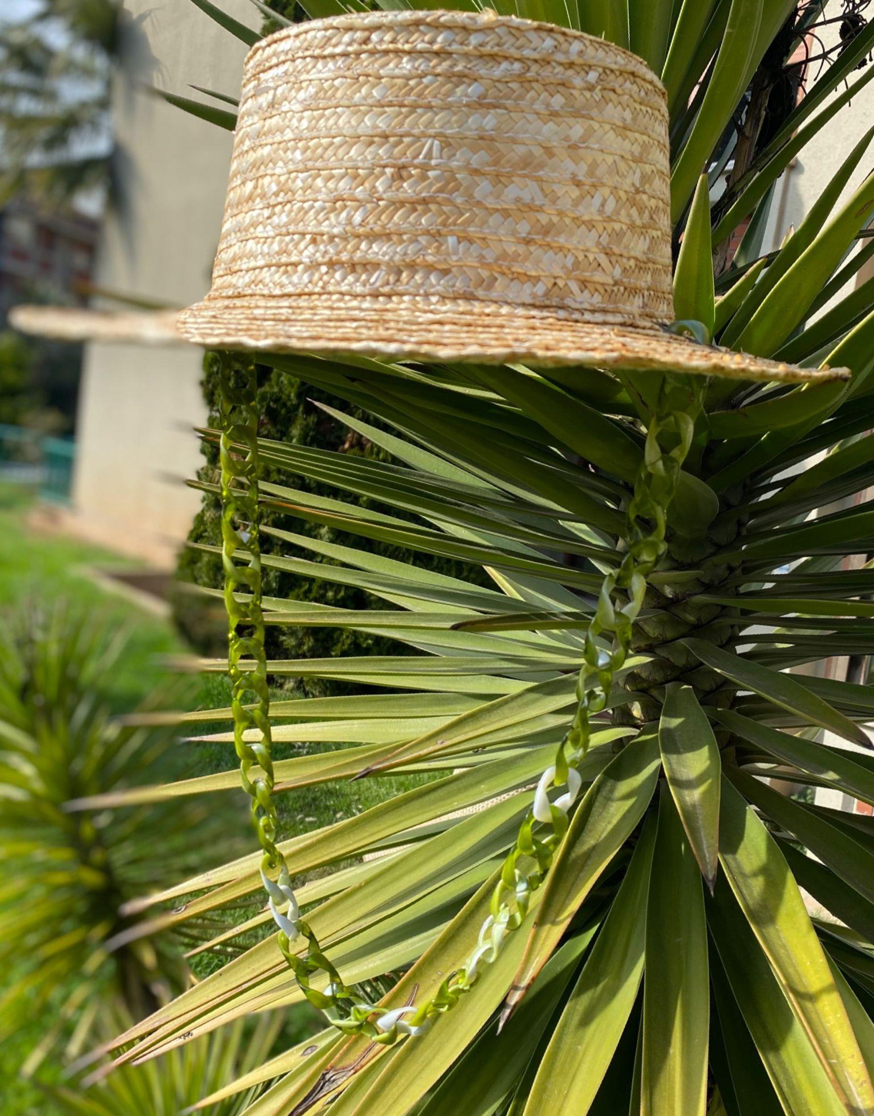 -Yeşil kalın zincir detaylı yosun panama hasır şapka.