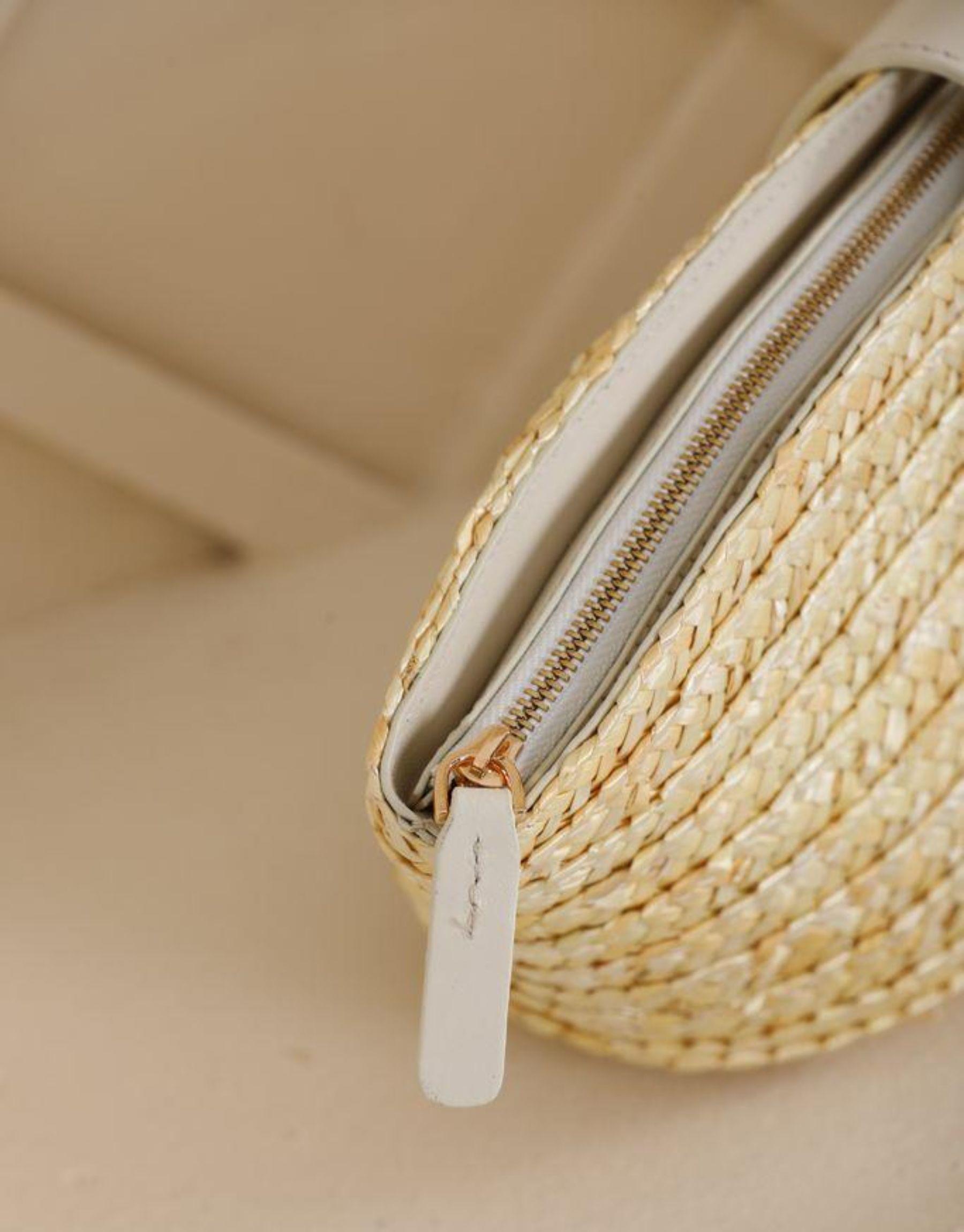 -El boyaöası harf detaylı %100 doğal hasır clutch.