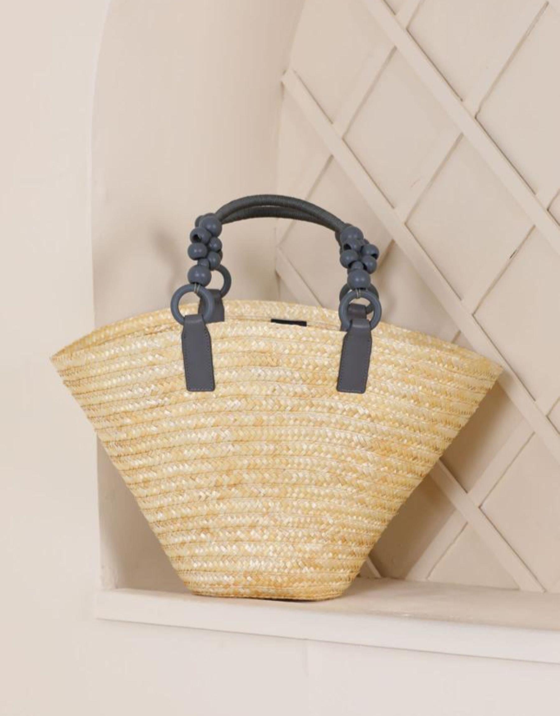 -Ahşap saplı, bağlantı yerleri orjinal deri, el boyaması harf detaylı %100 doğal hasır çanta