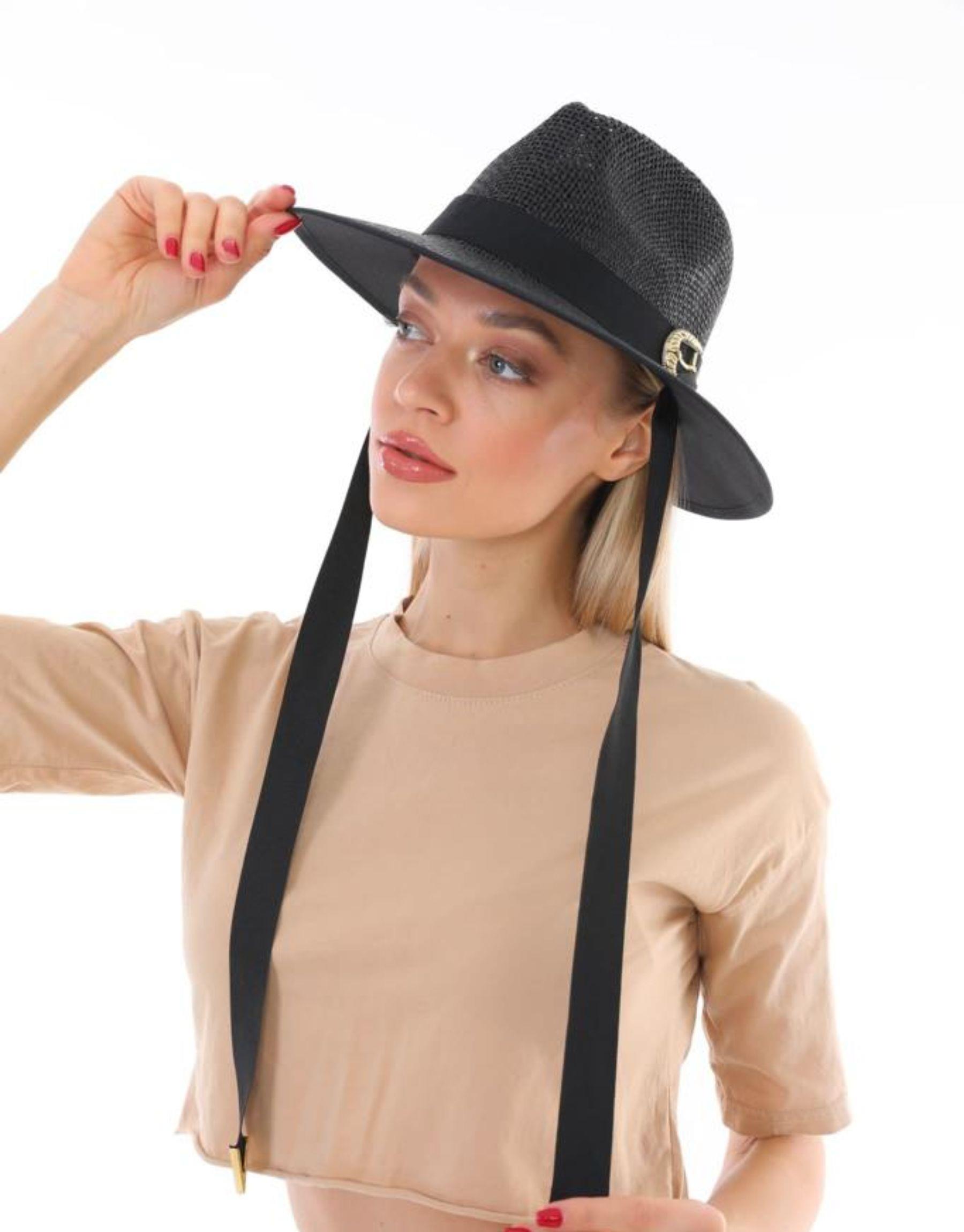 Metal aksesuarlı, kuşaklı şapka